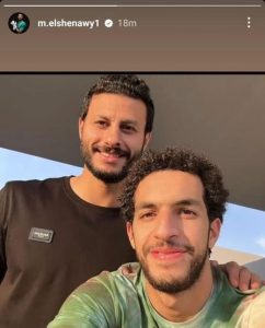 نشر محمد الشناوي حارس مرمى الفريق الأول لكرة القدم بالنادي الأهلي، صورة له مع زميلة مصطفى شوبير، لتدعيم الأخير بعد الأداء المميز أمام شباب بلوزداد الجزائري في دوري ابطال افريقيا.