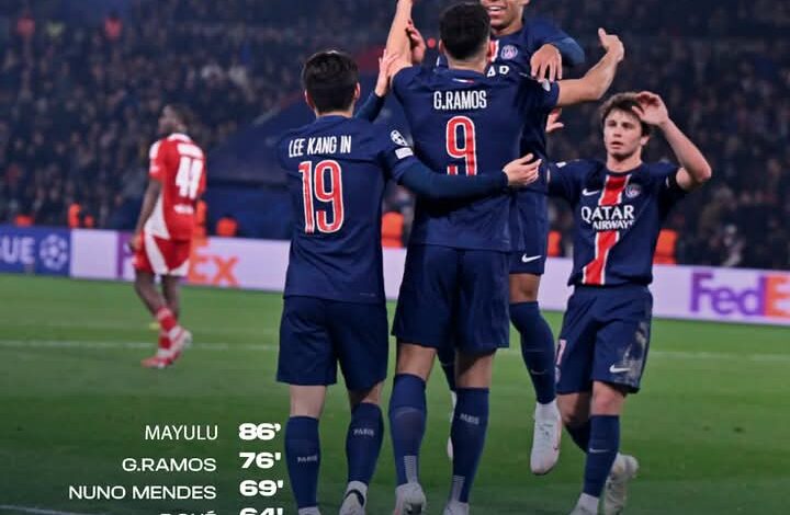وبعدها بعشر دقائق، رفع ديزيري دوي الغلة التهديفية بهدف رابع في الدقيقة 69، قبل أن يضيف نونو مينديش الهدف الخامس بعد تمريرة رائعة من أشرف حكيمي.