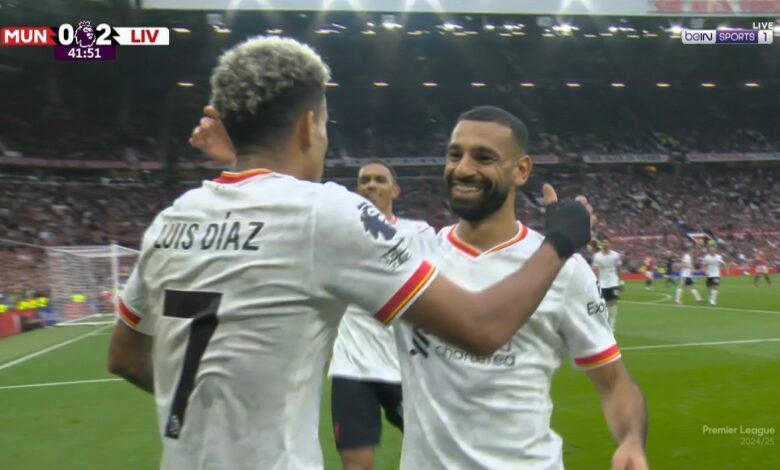 اسيست محمد صلاح لهدف ليفربول الثاني امام مانشستر يونايتد في الدوري الانجليزي