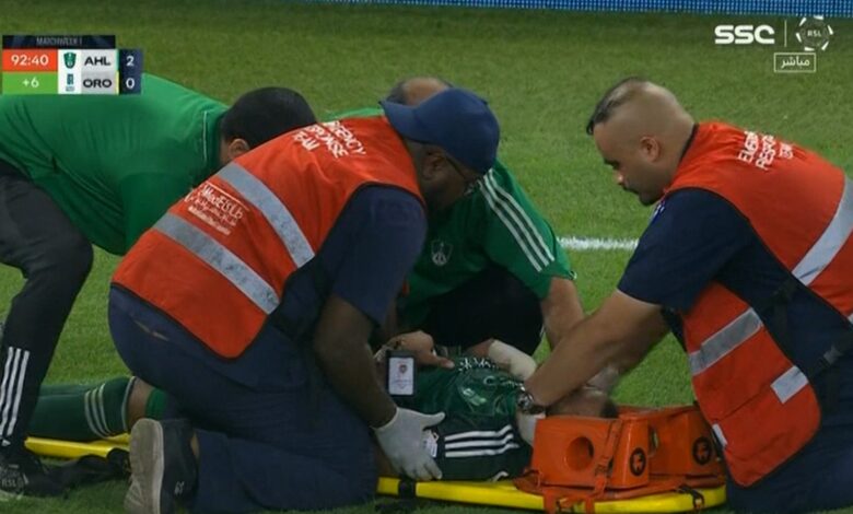 اصابة علي مجرشي وخروجة علي نقالة في مباراة الاهلي والعروبة بالدوري السعودي