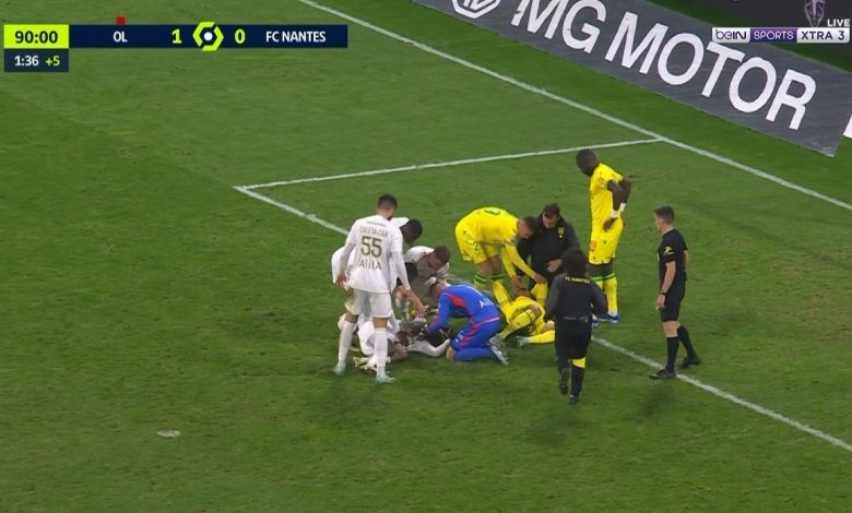 اصابة مصطفي محمد في مباراة نانت وليون بالدوري الفرنسي