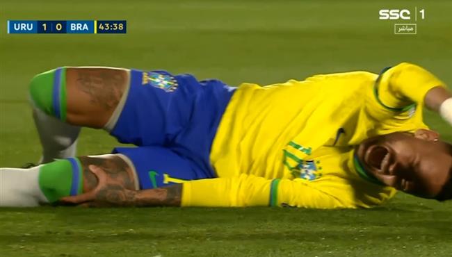 اصابة نيمار القوية في مباراة البرازيل واوروجواي بتصفيات امريكا الجنوبية لكأس العالم
