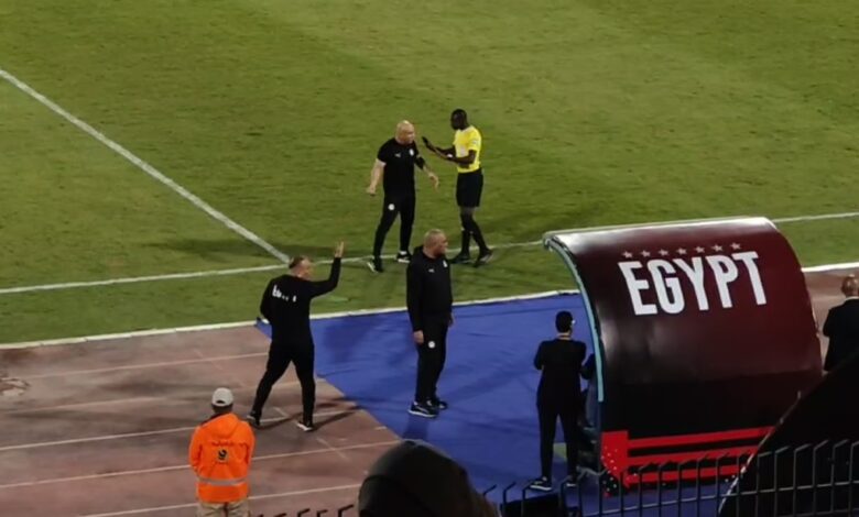 اعتراض حسام حسن علي الحكم الرابع والمطالبة بركلة جزاء لـ مصر امام بوتسوانا