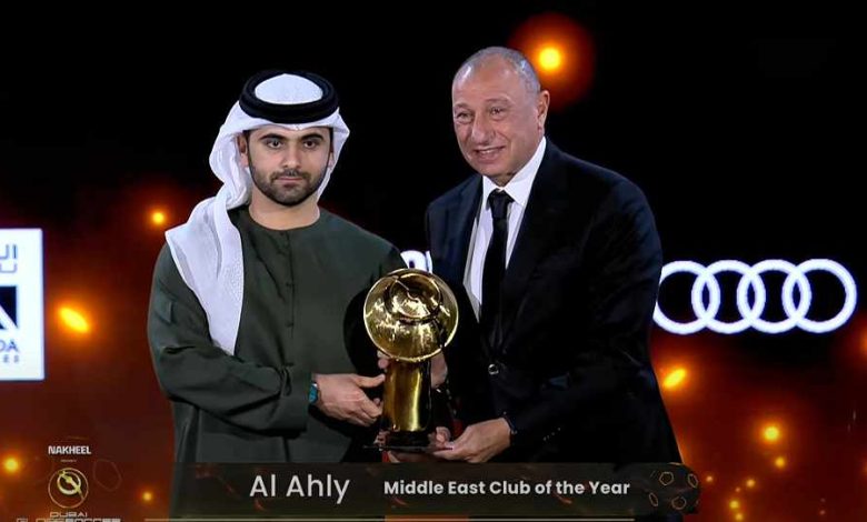 الخطيب يتسلم جائزة الأهلي أفضل نادٍ بالشرق الأوسط في حفل «دبي جلوب سوكر»
