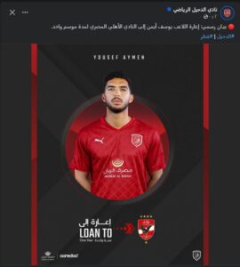 الدحيل القطري يعلن إعارة يوسف أيمن إلى النادي الأهلي