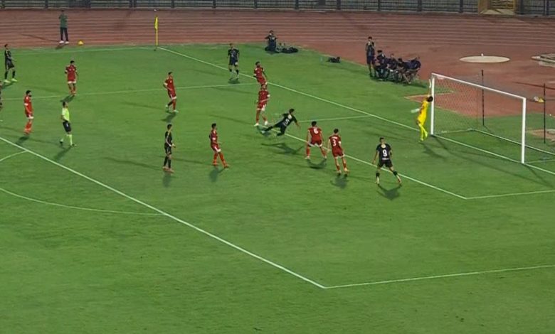 العارضة تحرم محمد بن رمضان من تسجيل هدف الفوز لـ الاهلي امام مودرن سبورت