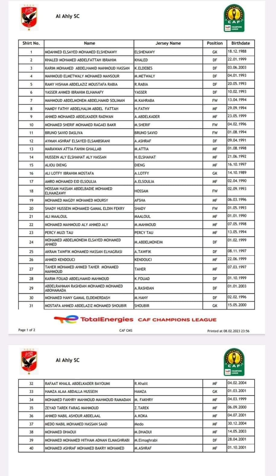 وجاءت قائمة الأهلي كالآتي وفقا لموقع كاف: