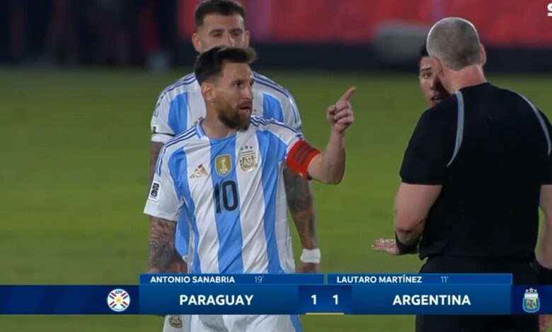 انفعال وغضب ميسي علي حكم مباراة الارجنتين وباراجواي بتصفيات كأس العالم