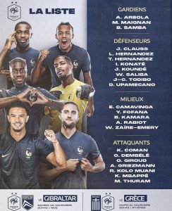 أعلن “ديديه ديشامب” مدرب المنتخب الفرنسي، عن قائمة الديوك المستدعاة لمواجهتي شهر نوفمبر الجاري.