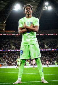 ثم ضرب لامين يامال بالهدف الثاني للبلوجرانا في الدقيقة 53، بعد خطأ من دفاع الأتلتيك استغله جافي ومرر الكرة ليامال المنفرد وسدد الكرة سكنت الشباك.