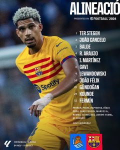 يلتقي فريق برشلونة بمضيفه ريال سوسيداد، في إطار مباريات الجولة الثانية عشر من الدوري الإسباني، ملعب “ريالي سيجيروس”، في تمام الساعة العاشرة مساءً بتوقيت القاهرة والحادية عشر مساءً بتوقيت الرياض.