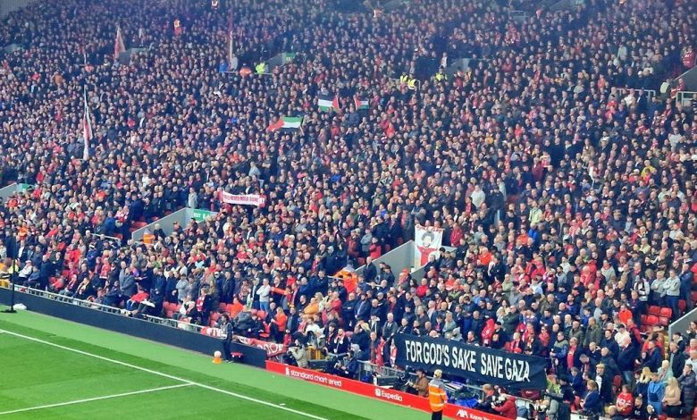وشهدت مباراة اليوم بتواجد جماهير ليفربول دعمهم إلى فلسطين عن طريق رفع العلم الخاص بهم في المدرجات .