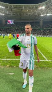 حرص “إسلام سليماني” لاعب منتخب الجزائر على الاحتفال بطريقة خاصة بعد إحرازه الهدف الثالث لمنتخب بلاده أمام الصومال.