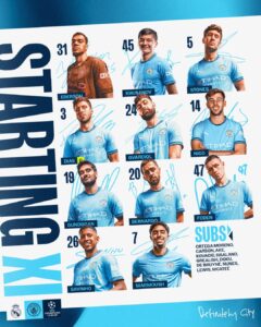 تشكيل مانشستر سيتي الرسمي أمام ريال مدريد