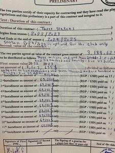 حصل “فوتبول” على نسخة تم تسريبها من عقد السنغالي إبراهيما نداي جناح الفريق الأول لكرة القدم بنادي الزمالك، والذي شهد حصوله على رقم مالي ضخم.