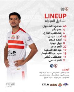 ويتواجد على مقاعد البدلاء كلاً من، عمر عبد العزيز وأحمد رفاعي ومحمد أشرف “روقا” ومحمد السيد وجمال موتيابا وأحمد عبد الرحيم “إيشو” ومحمد عاطف ومحمود عبد الرازق “شيكابالا” وسيف الجزيري.