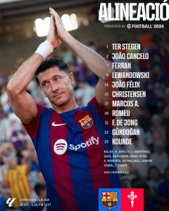 وفي إطار ذلك أعلن “تشافي هيرنانديز” المدير الفني لبرشلونة عن تشكيل المقابلة كالتالي: