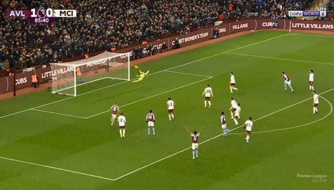 القائم يحرم استون فيلا من تسجيل هدف رائع امام مانشستر سيتي بالدوري الانجليزي