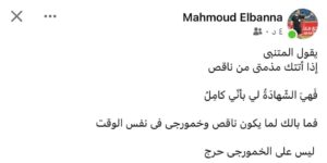 وجاء رد محمود البنا لادعا لنجم الزمالك عبر حسابه على موقع التواصل الإجتماعي فيس بوك” ليس على الخمورجي حرج”.