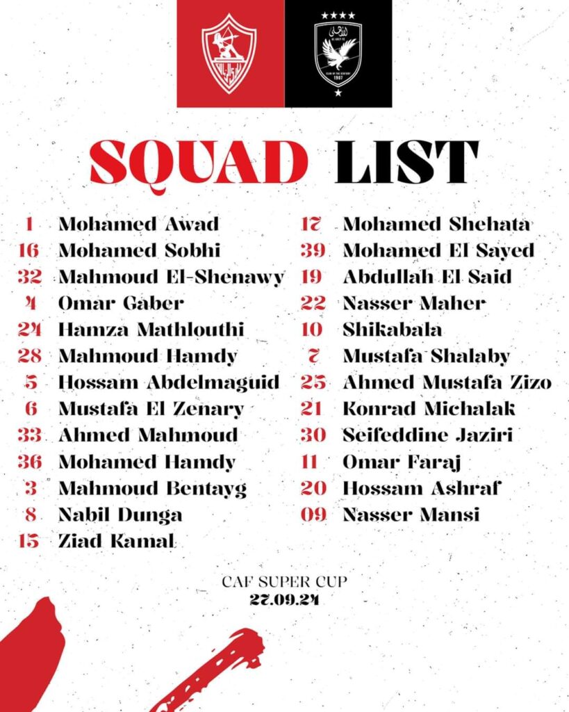 الزمالك يعلن قائمته المتجهه إلى السعودية لمواجهة الأهلي في السوبر الأفريقي