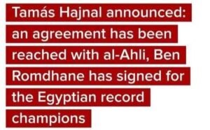 وأكد المسؤول في تصريحات رسمية: “تم التوصل إلى اتفاق مع النادي الأهلي بشأن انتقال محمد علي بن رمضان، وقد تم توقيع العقود بشكل رسمي بين الطرفين.”