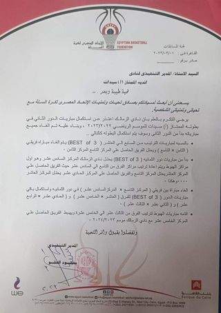 وجاء بيان الاتحاد المصري لكرة السلة كالآتي: