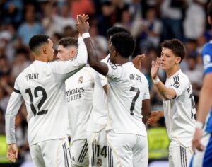 المواجهة التي استضفها ملعب “سانتياجو برنابيو” معقل الفريق الملكي، جاءت أهدافها عن طريق نجمي ريال مدريد كيليان مبابي وفينيسيوس جونيور، وقلص توني مارتينيز النتيجة ألافيس.