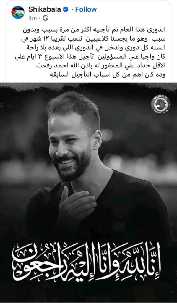 وأضاف: “كان من الواجب على المسؤولين تأجيل مباريات هذا الأسبوع لمدة 3 أيام على الأقل حدادًا على المغفور له أحمد رفعت، وهو سبب يستحق التأجيل أكثر من كل الأسباب السابقة”.