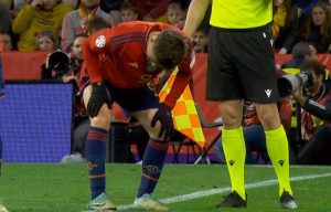 وخرج جافي باكيًا عند الدقيقة 22 من عمر اللقاء بعد إصابته في الركبة وقام المدير الفني لمنتخب إسبانيا بـ إستبداله.