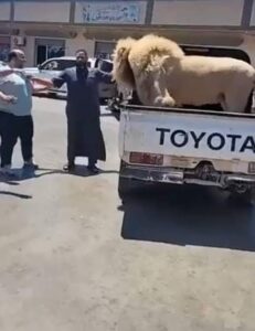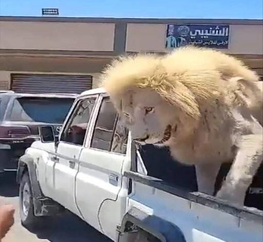 أظهر مقطع فيديو تم تداوله على موقع التواصل الاجتماعي “تويتر”، أسدا مربوطا على متن سيارة نصف نقل في ليبيا، التف حوله بعض الأشخاص دون خوف، ما أثار جدلا واسعا.