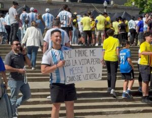 ورفع أحد مشجعي الأرجنتين لافتة في المدرجات إلى الأسطورة الأرجنتينية: “لقد منحتني والدتي الحياة، لكن ميسي أعطاني الرغبة في عيشها”.
