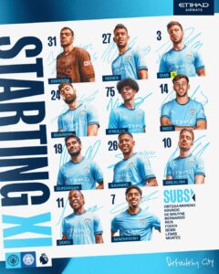 وفي إطار ذلك أعلن “بيب جوارديولا” المدير الفني للسيتي عن تشكيل فريقه لمواجهة اليوم وجاء كالتالي:-