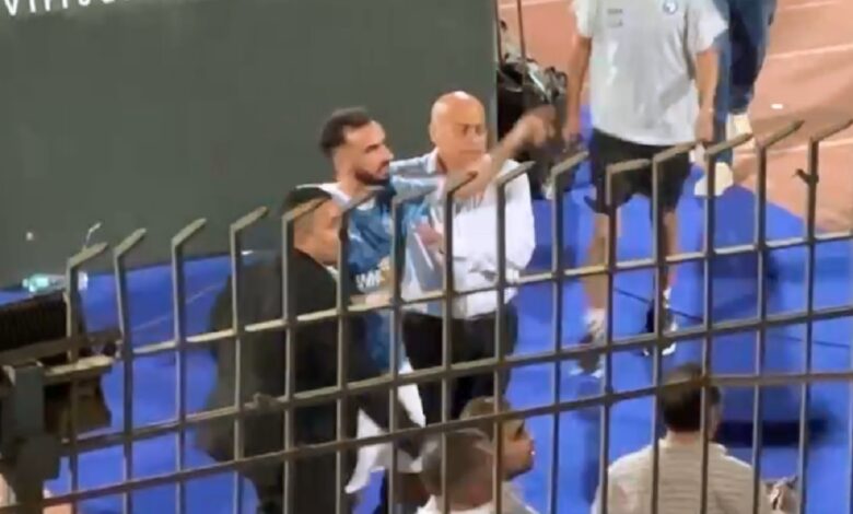 غضب محمود دونجا على مراقب المباراة وجماهير الاهلي تلقي عليه زجاجة المياة