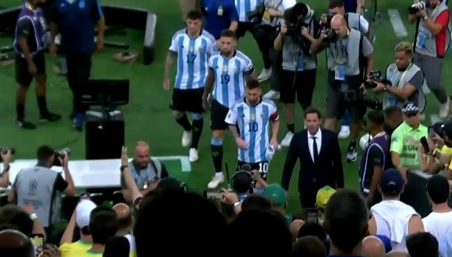 غضب ميسي وخروجه مع لاعبي الارجنتين بعد مشاجرات بين الجماهير والشرطة
