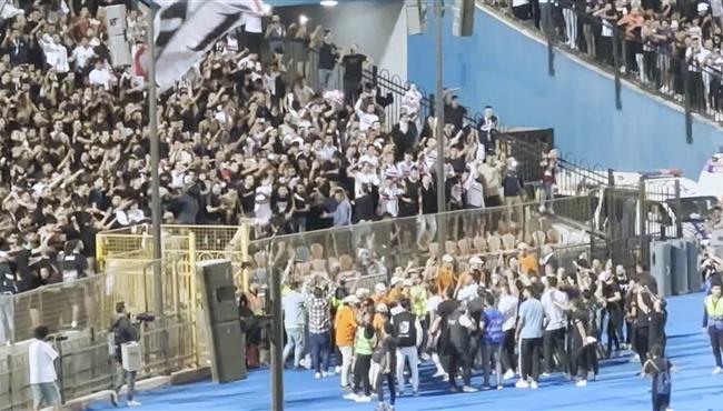 فرحة محمد عواد واللاعبين مع الجمهور بعد الفوز علي بيراميدز في كاس مصر
