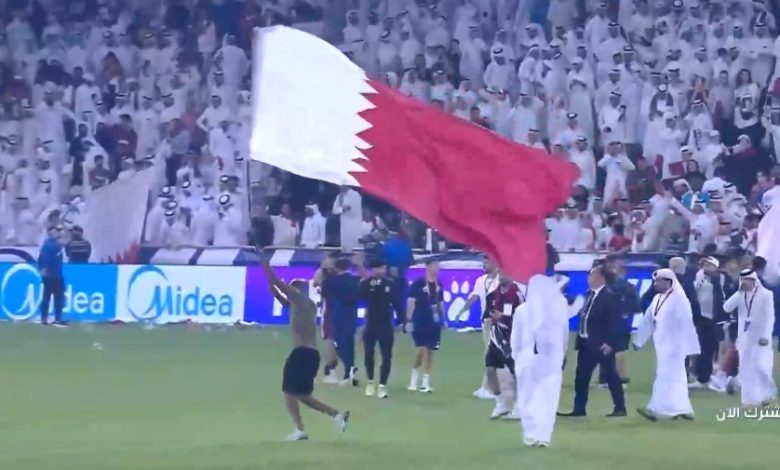 فرحه لاعبي قطر بعد الفوز علي الامارات والصعود الي كاس العالم