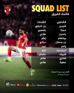 وجاءت قائمة الأهلي لمواجهة سيراميكا كالتالي:-