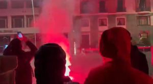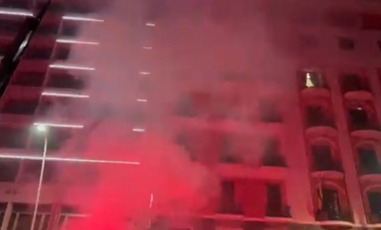 جماهير نابولي أطلقت الصواريخ واشعلت الشماريخ والألعاب النارية أمام مقر بعثة ريال مدريد في مدينة نابولي الإيطالية، في ساعات الصباح الأولى من اليوم الثلاثاء.
