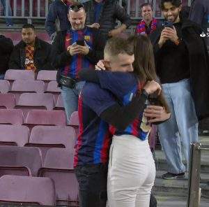 وقدم أحد مشجعي برشلونة الإسباني عرضًا للزواج من صديقته التي تفاجئت بالأمر قبل أن توافق على العرض.