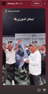 وأعاد قطة نشر فيديو للاحتفال بالدوري مع عبارة (أبطال الدوري)، عبر قصته بصفحته الرسمية على منصة إنستجرام.