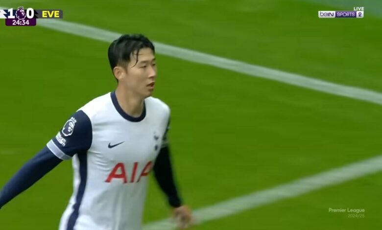 هدف سون في مرمي ايفرتون بعد خطأ فادح من بيكفورد
