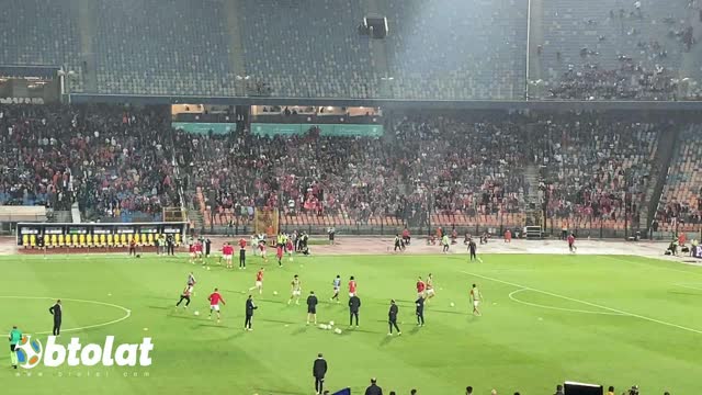 لاعبي الاهلي يتبادلون التحية مع الجماهير قبل نهائي كأس مصر