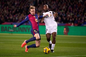 لامين قدم تمريرة حاسمة لزميله الهولندي فرينكي دي يونج في الهدف الأول للبرسا، في الدقيقة الثالثة من انطلاق أحداث اللقاء.