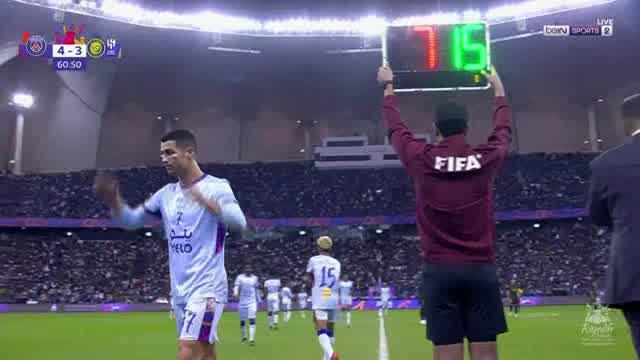 لحظة خروج رونالدو وميسي في مباراة نجوم النصر والهلال وباريس وتحية الجماهيرلهما