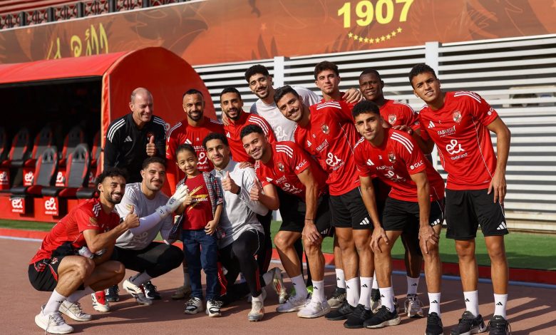 لفتة إنسانية من الأهلي.. الطفل أحمد يزور اللاعبين قبل سفره للعلاج