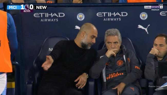 لقطة جوارديولا مع احد الجماهير في مباراة مانشستر سيتي ونيوكاسل
