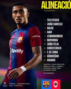 وأعلن “تشافي هيرنانديز” المدير الفني لفريق برشلونة عن تشكيل فريقه لمواجهة اليوم كالتالي: