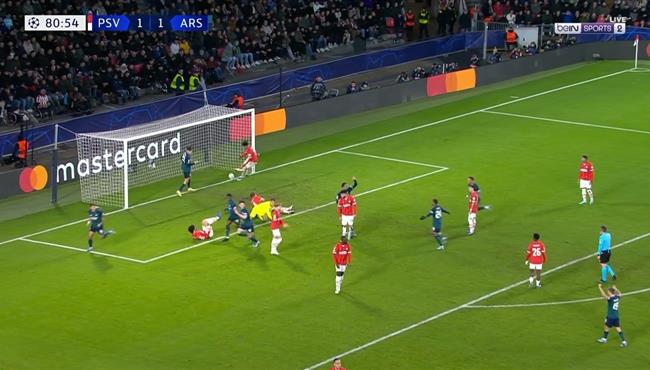 هدف ارسنال الملغي في مرمي ايندهوفن بدوري ابطال اوروبا