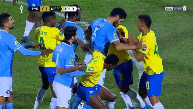 مشادة بين اللاعبين في مباراة بيراميدز وصن داونز بدوري ابطال افريقيا