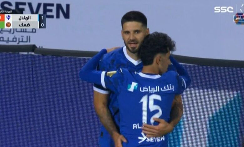 هدف الهلال الاول في مرمي ضمك بالدوري السعودي